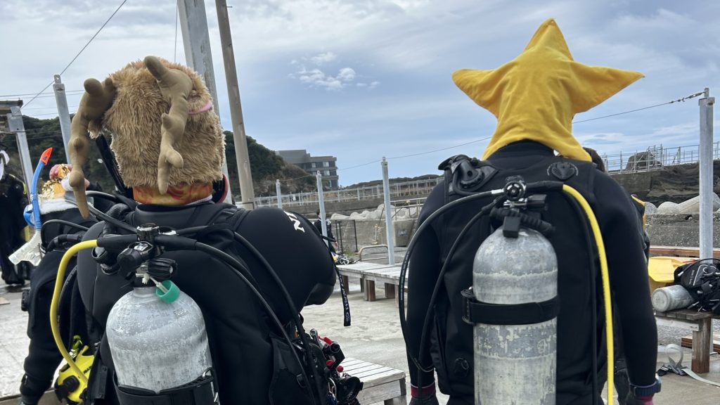 トナカイやサンタ帽をかぶってのダイビング。