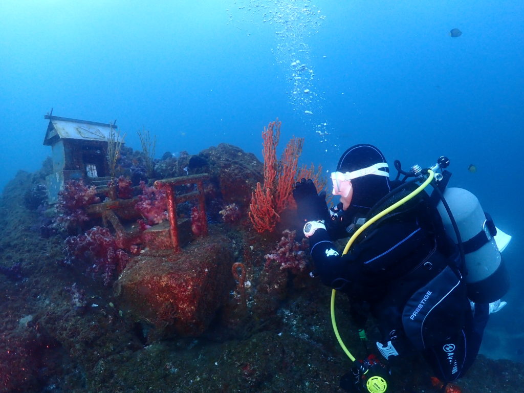 定番の水中神社にて安全祈願&記念撮影からスタート!